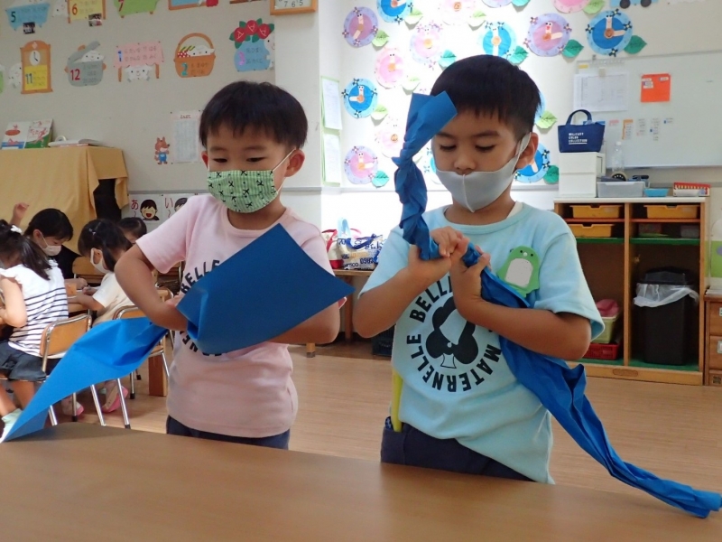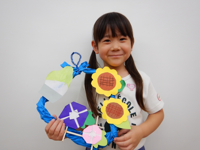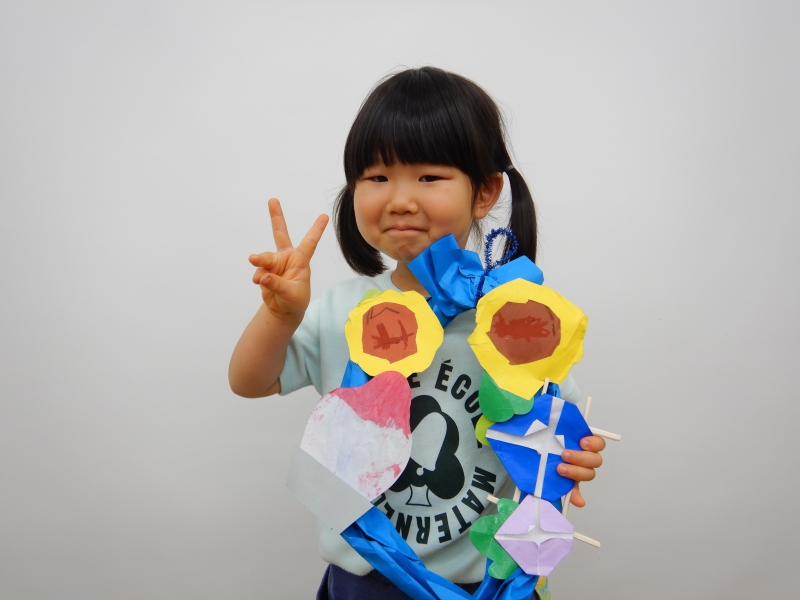 あさがおは折り紙、割りばしで