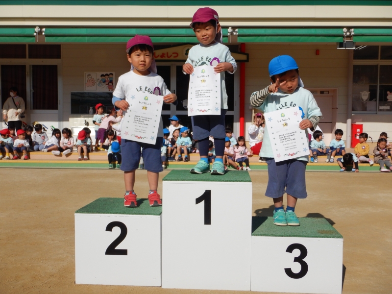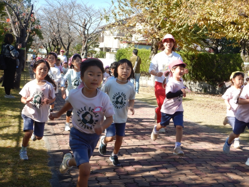 元気いっぱい 満3歳児と男の子のマラソン大会を