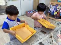はじめての和紙染めに ワクワクしたり 緊張したり・・
