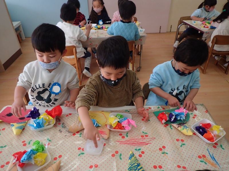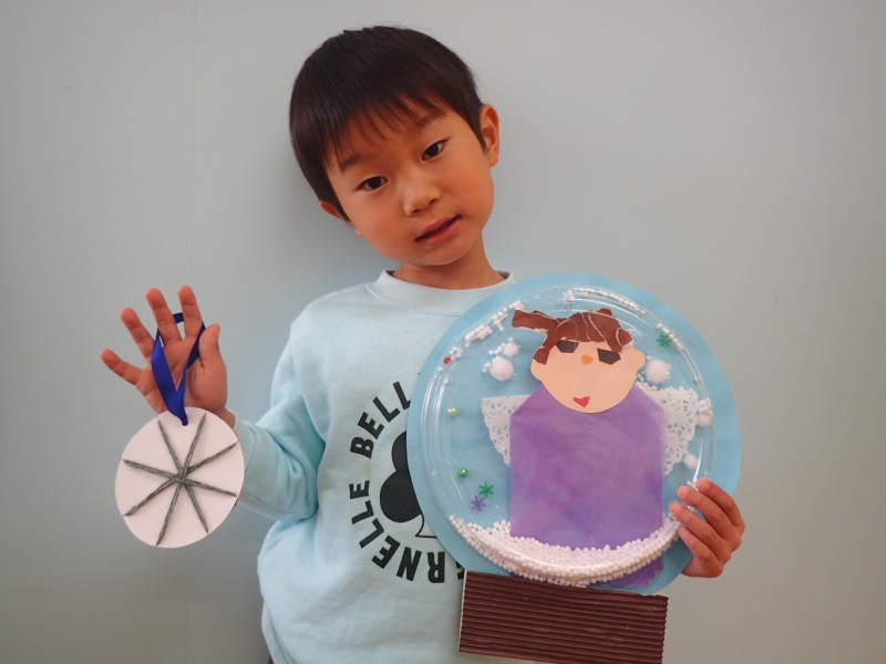 ビーズなどを飾り付けキラキラした雪景色を表現しました。
