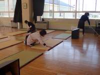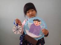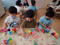 雪の結晶作りでは毛糸を厚紙に巻きつけるのに
