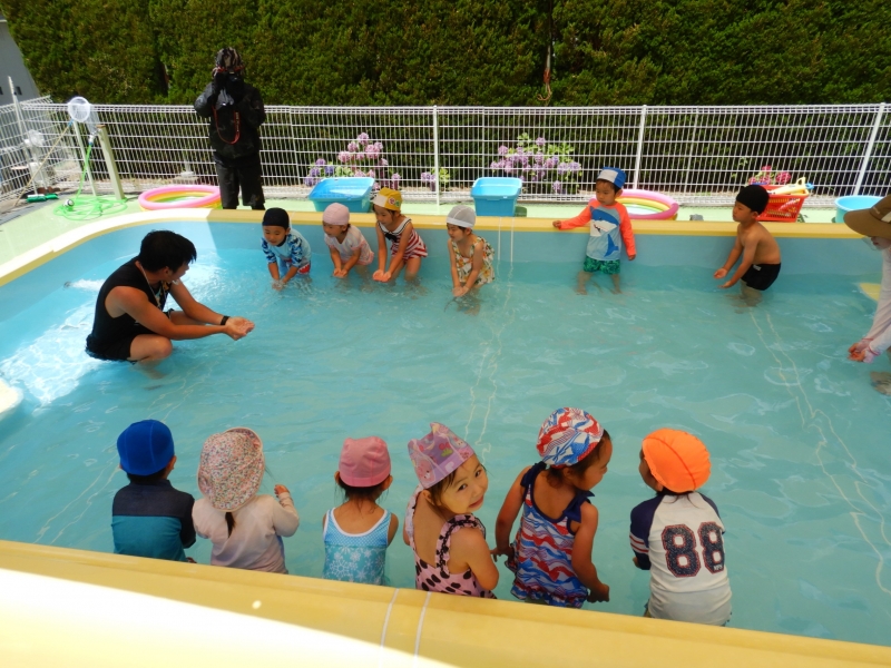 ゴシゴシとプールの壁も底も磨きあげてくれました。