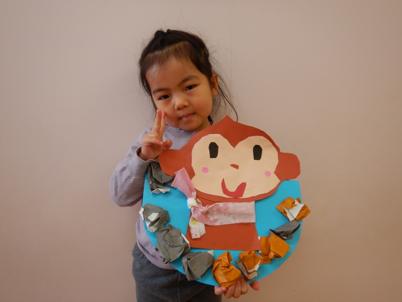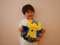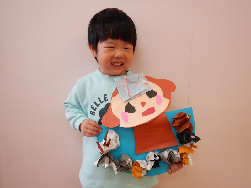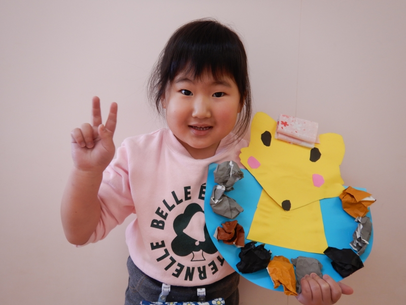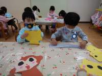 動物の顔のパーツは子どもたちが自分で描いて切りました。
