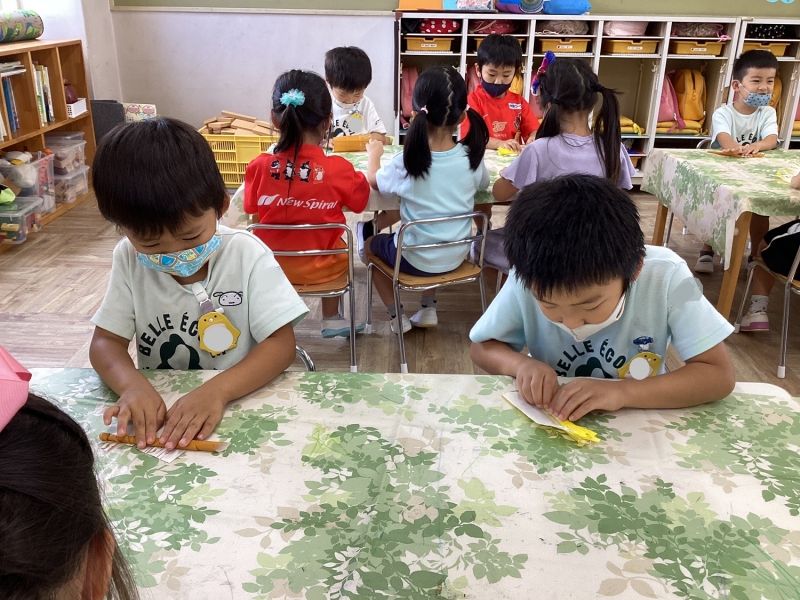 ひまわり組は「お月見掛け軸」を作りました。