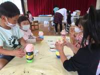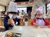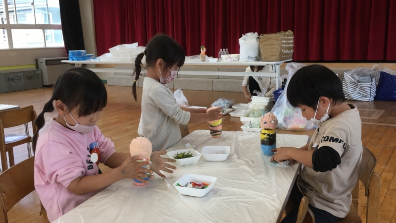 紙粘土を使ったクッキー作りでは、茶色や黄色の