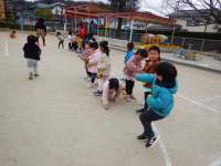 冬の寒さも チュウリップ組の雪だるまの可愛さで、