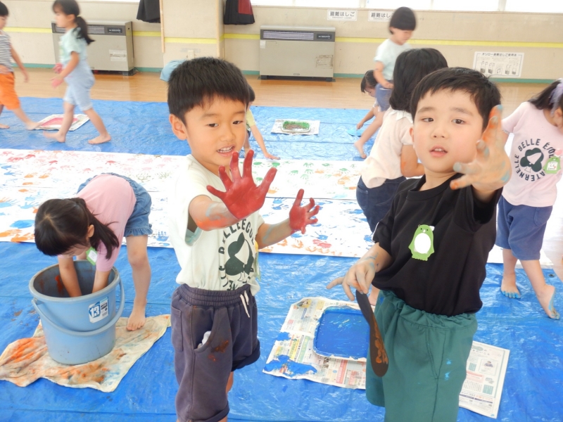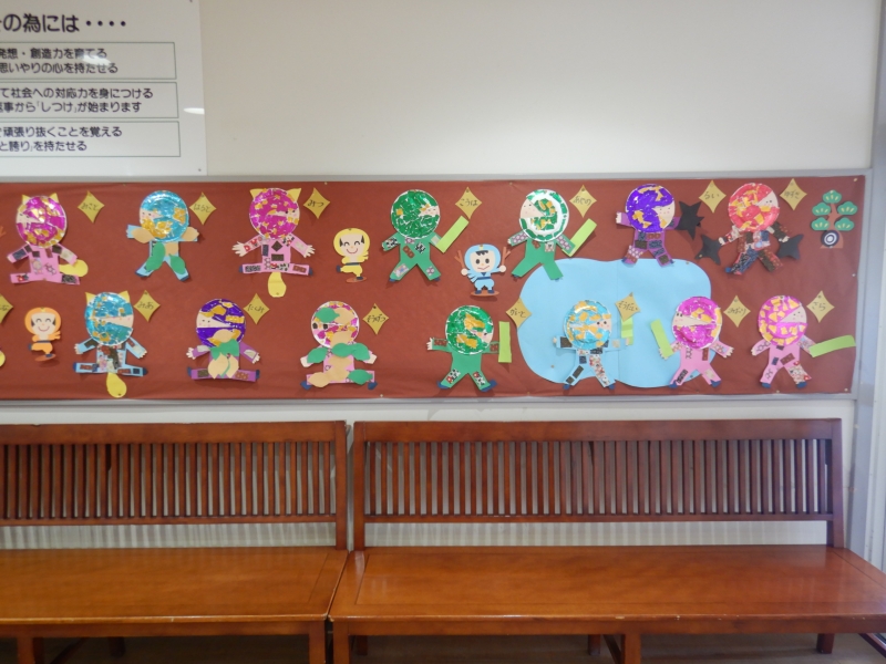 幼稚園玄関ホールで素敵な忍者たちが 皆さんを