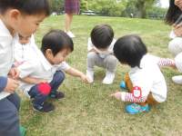1歳児さんは、4月には「ママ〜!」と扉にしがみついて離れなかった子どもたちが、今ではスタッフやお友だちとの世界の中で、のびのびと笑顔いっぱいに過ごしています。